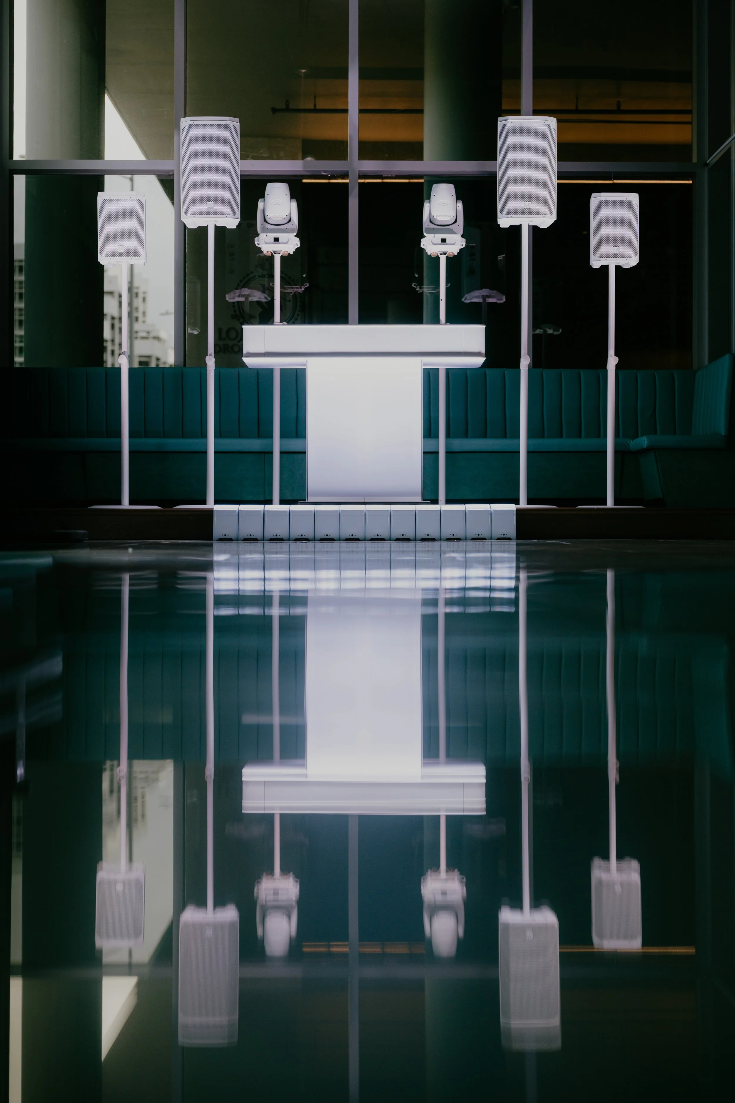 We’ve now upgraded our entire DJ setup to an all-white, fully wireless, battery-powered system. From the control table to speakers, lighting, and poles, every detail blends effortlessly into your reception space. No cords, no clutter—just a clean, sophisticated look that complements the timeless elegance of your event.